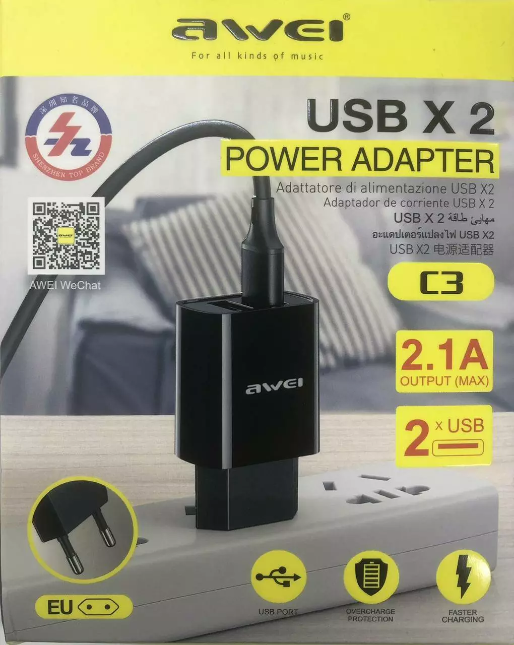 Адаптер 2 usb AWEI С3 ART 8745 (120 шт./ясть)