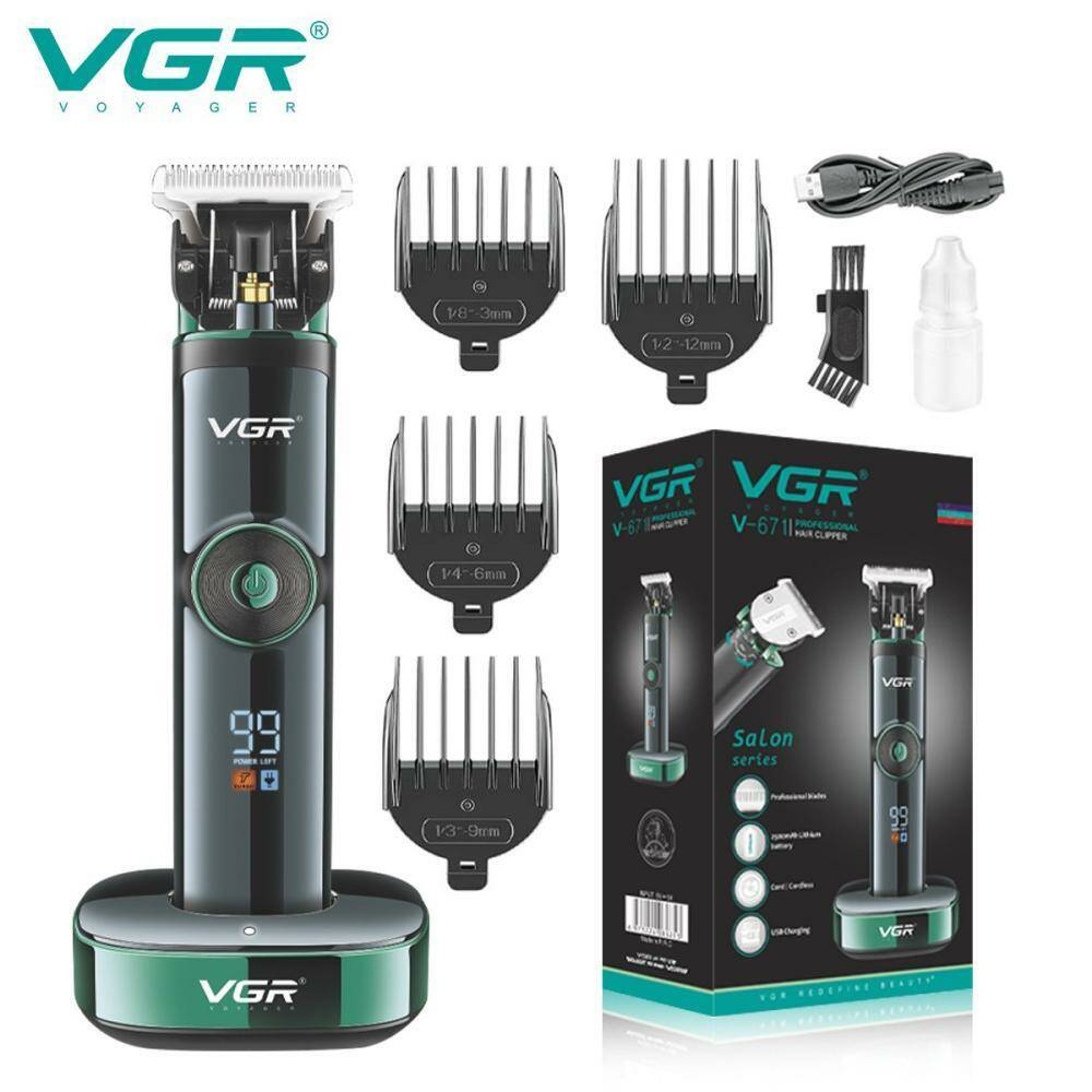 Акумуляторна машинка для стриження (clipper) VGR V-671, 4 насадки, LED display
