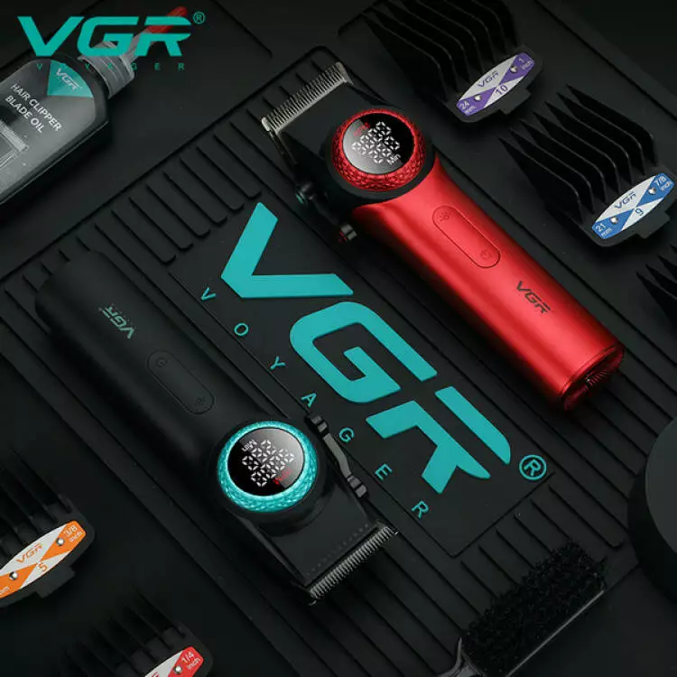 Акумуляторна машинка для стрижки (clipper) VGR V-001, 10 насадок, 9000 RPM, 4600 mAh, LED light, LED
