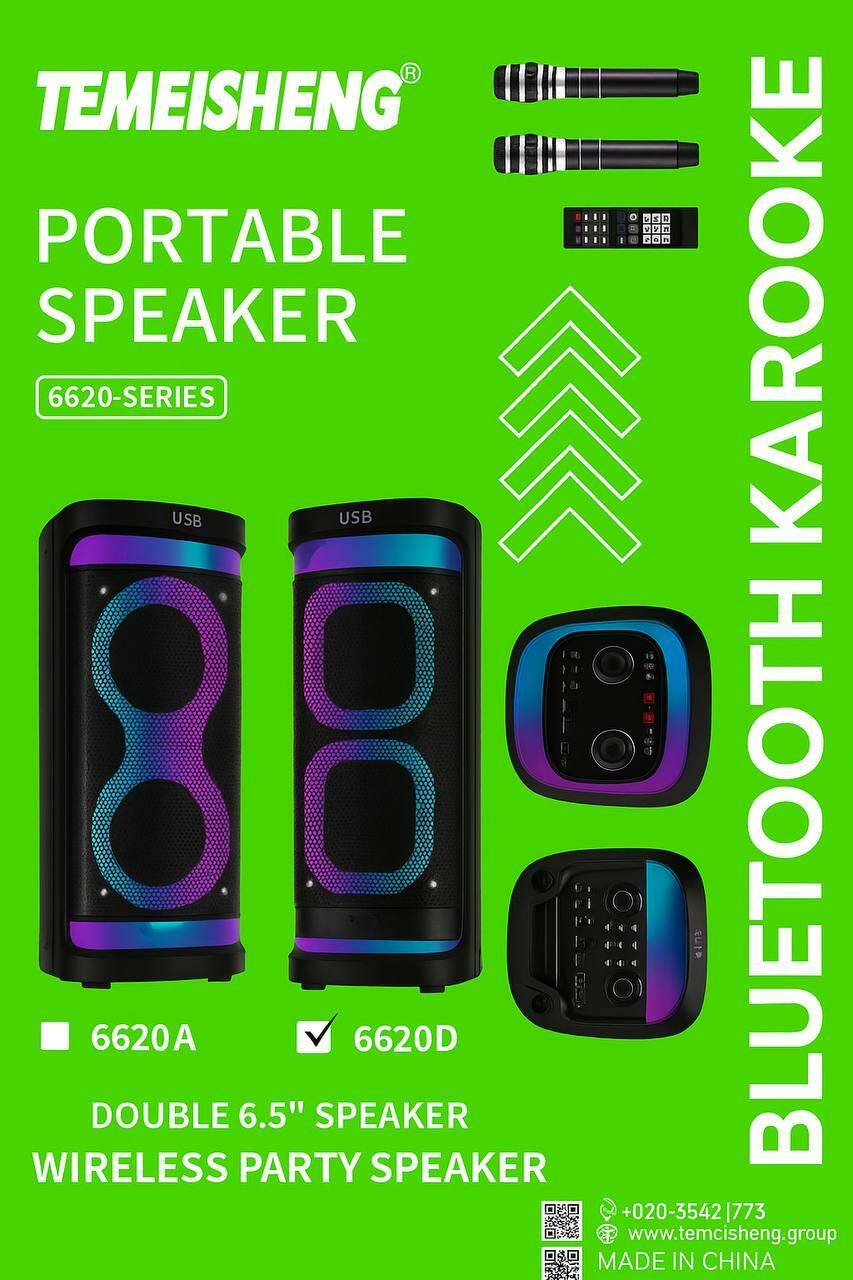 Акустична переносна колонка TEMESHENG 6620A 200Вт 2x6,5" 65х30х30см (1)