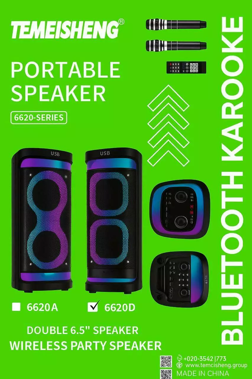 Акустична переносна колонка TEMESHENG 6620D 200Вт 2x6,5" 65х30х30см (1)