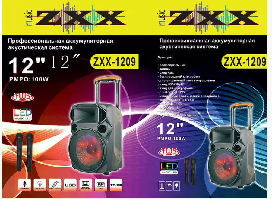 Акустична переносна колонка ZXX-1209 30 Вт 12" 52х34х32см 9452 (1 шт./яск)