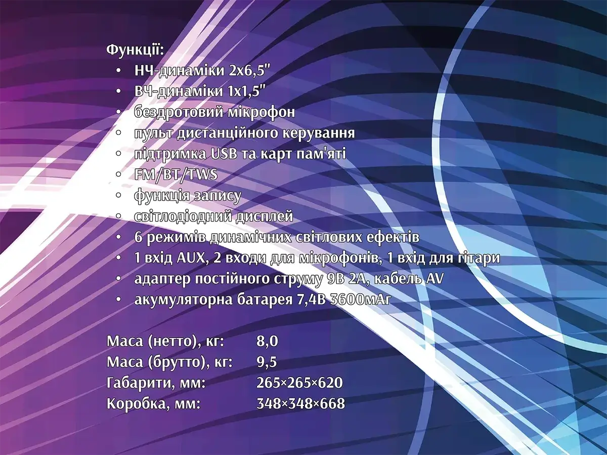 Акустична переносна колонка ZXX-5509/6437 1200Вт 2x6,5" 265х265х620мм (1)