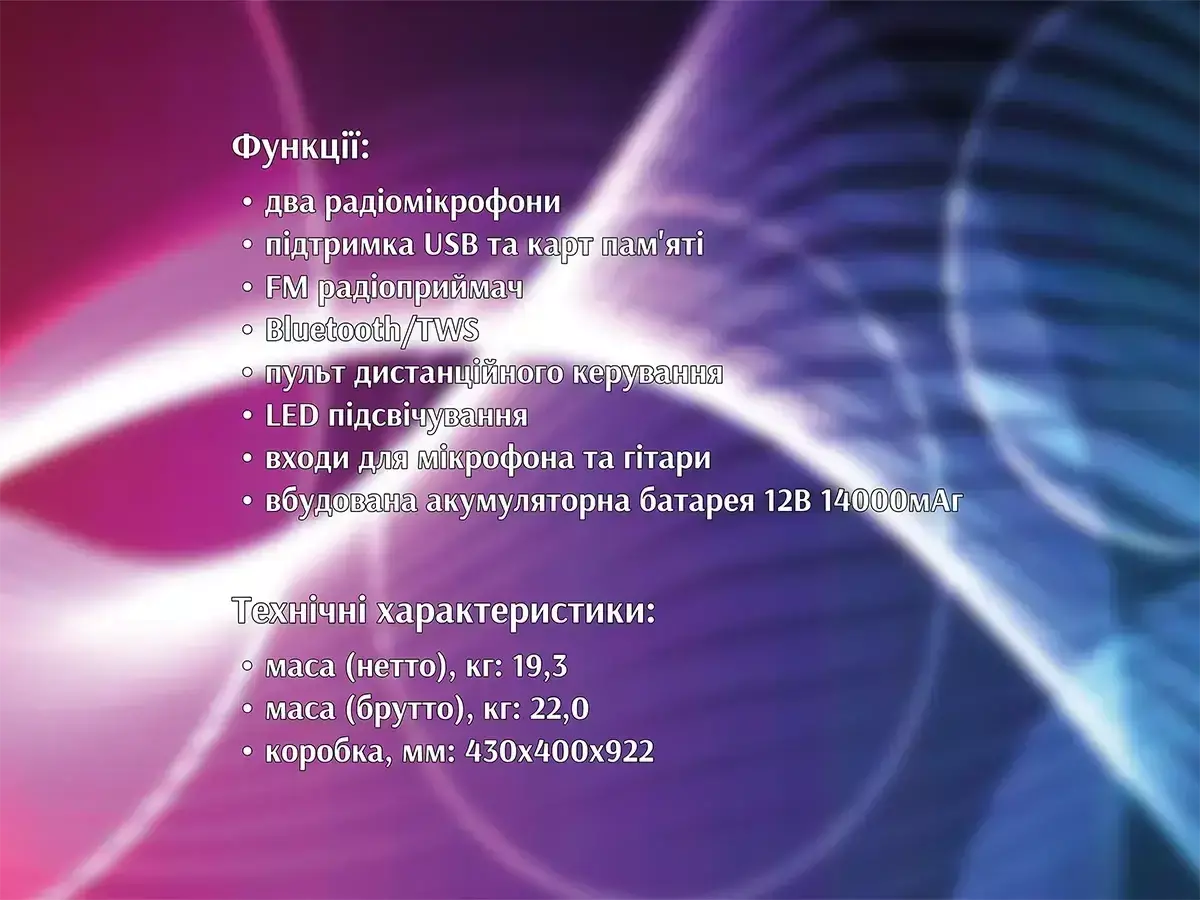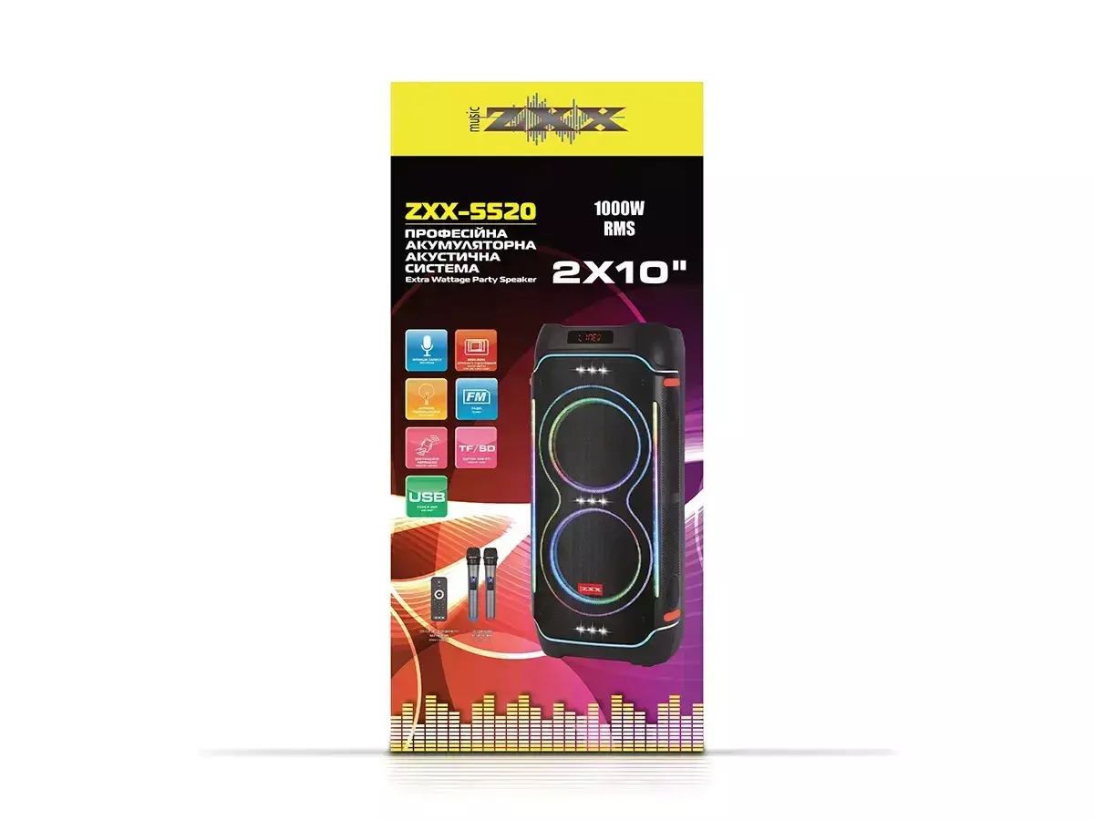 Акустична переносна колонка ZXX-5520/ 6500 100Вт 2x10" TWS/FM/USB/TF/BT/REC/LED/2MIC/ДК (1)