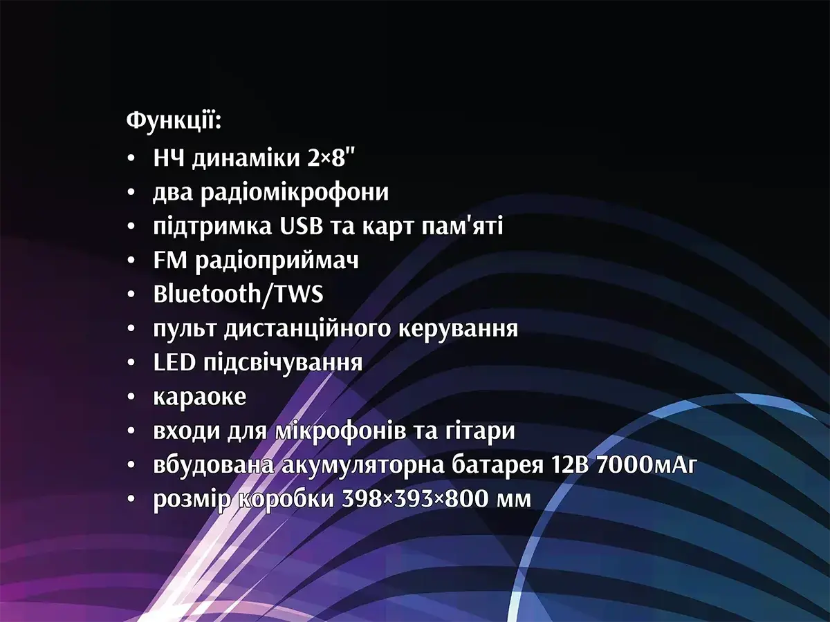 Акустична переносна колонка ZXX-5530 80Вт 2x8"
