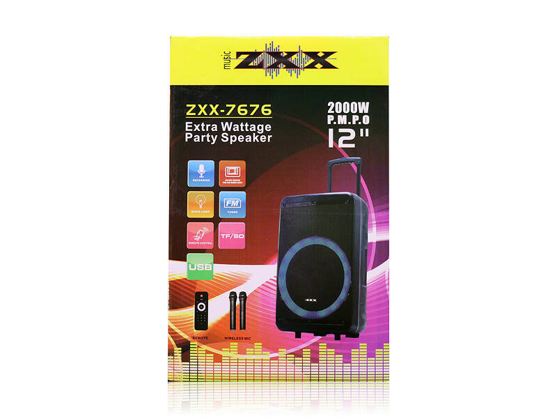 Акустична переносна колонка ZXX-7676/ 8162 60 Вт 12" 59х36х30 см USB/SD/FM/BT/TWS/2MIC (1 шт./яск)