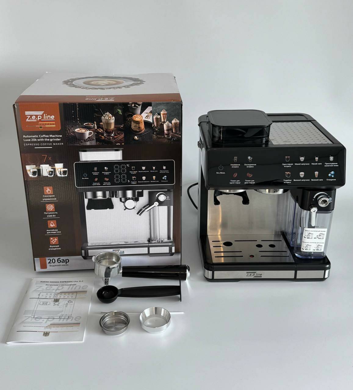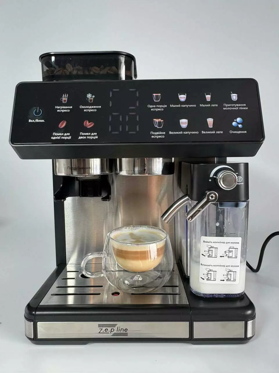 Автоматична Кавова машина Zepline ZP-6807 1500 Вт зі встроєною кавомолкою 20Bar (2)