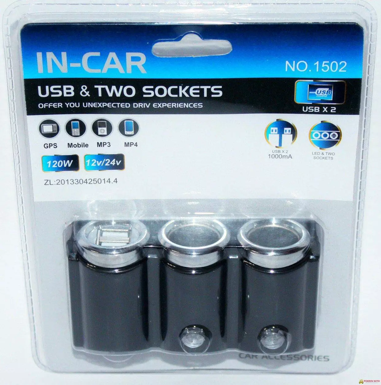 Автомобільний зарядний пристрій Olesson MOD-1502 (2 in 1/2USB/120W/Triple Direct LED Socket)