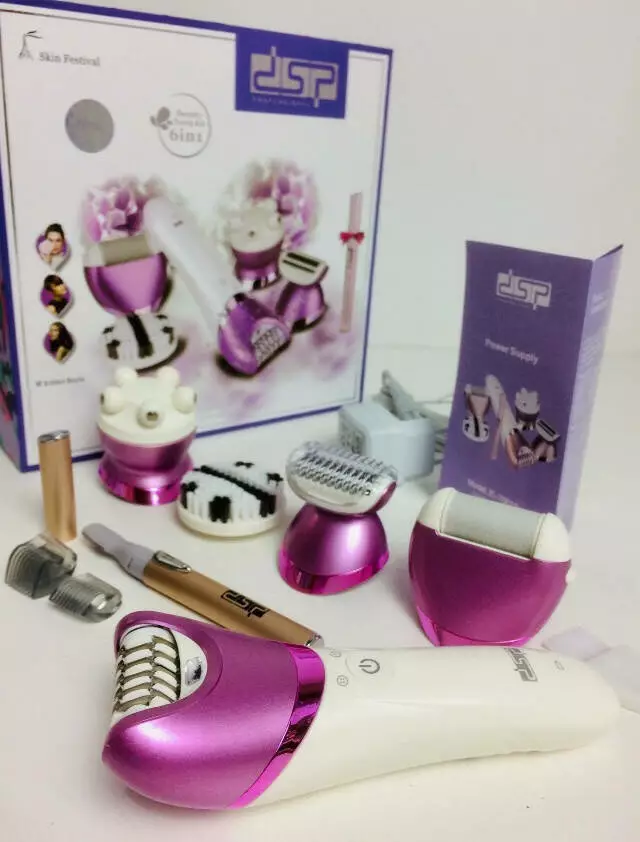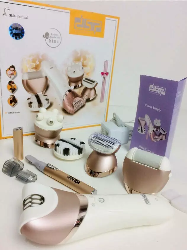 Багатофункціональний електричний епілятор пилка масажер очисник 6в1 DSP 70019 + тример для брів