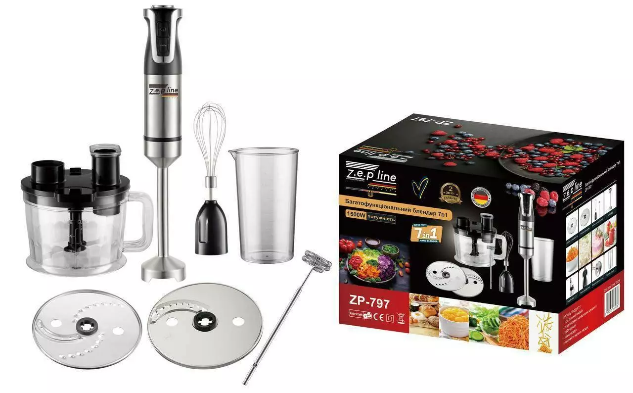 Багатофунціональний блендер Zepline 7в1 1500 Вт ZP-797 Чорний (8)