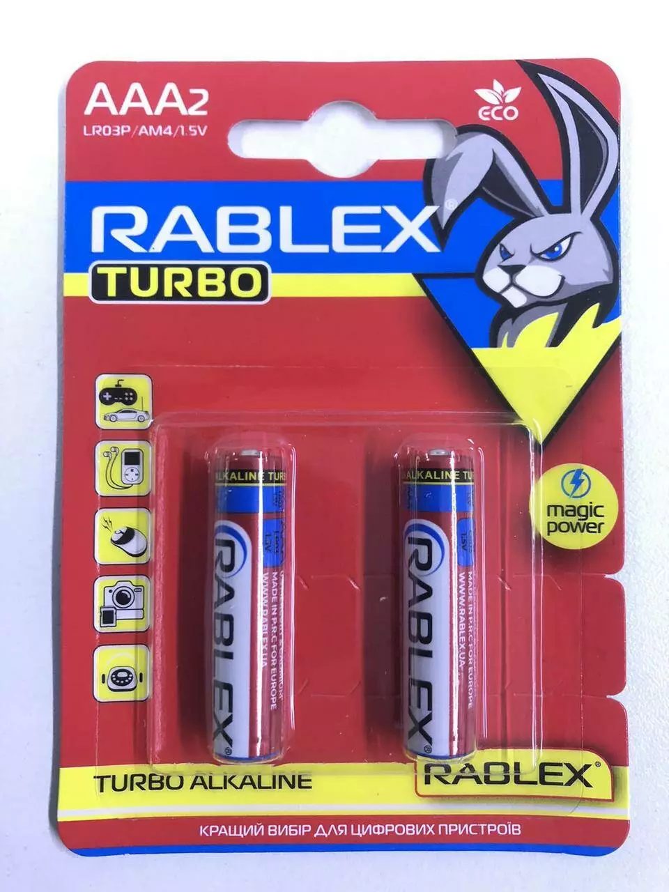 Батарейка Rablex Turbo лужна на блістері LR3//ААA/1.5V/2шт/20 (480 шт./ясть)