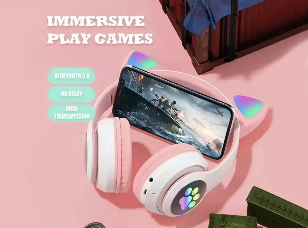 Бездротові Bluetooth-навушники з вушками Cat Ear VZV-24M/8079 з LED-підсвіткою (80 шт./ясть)