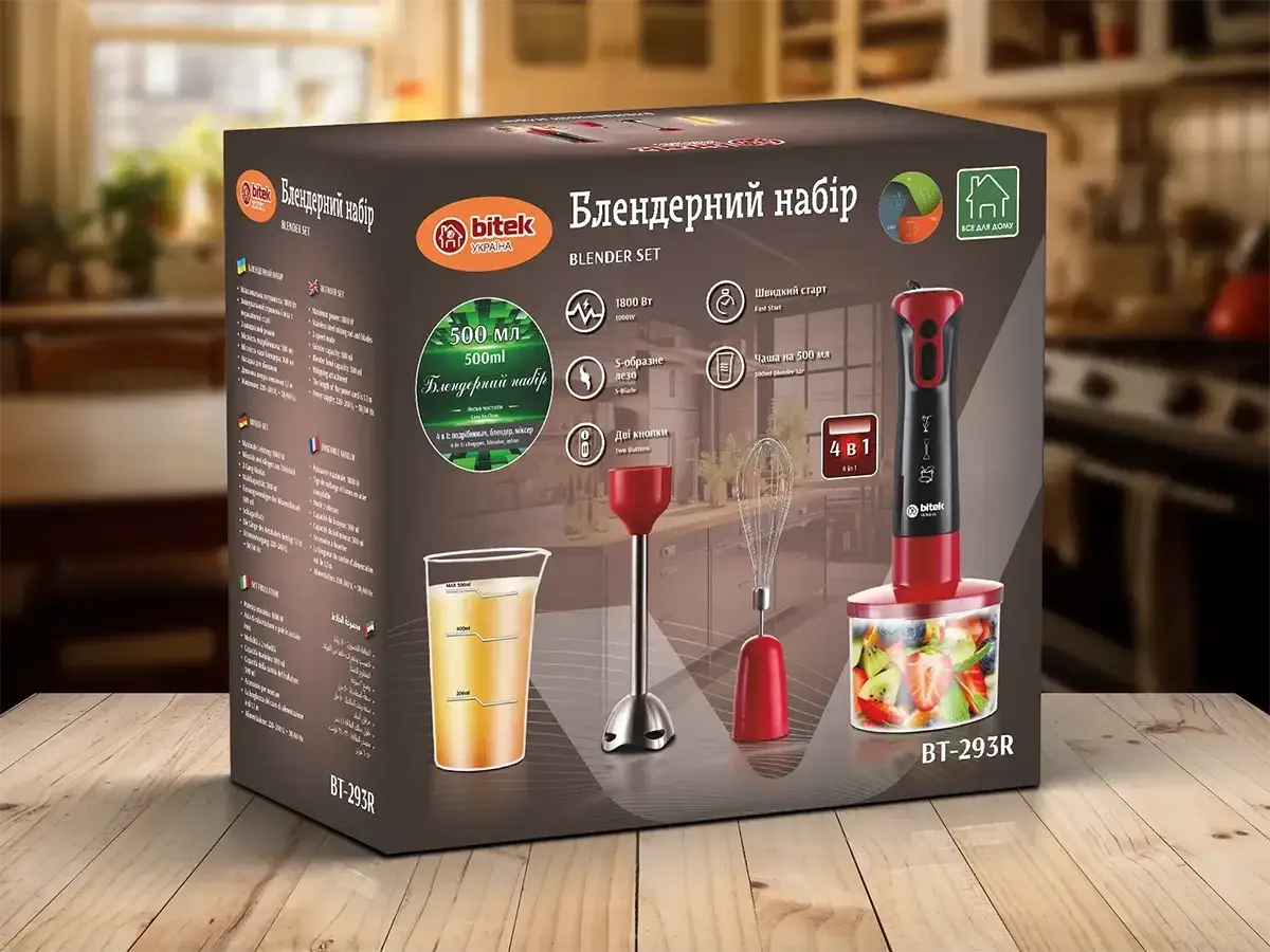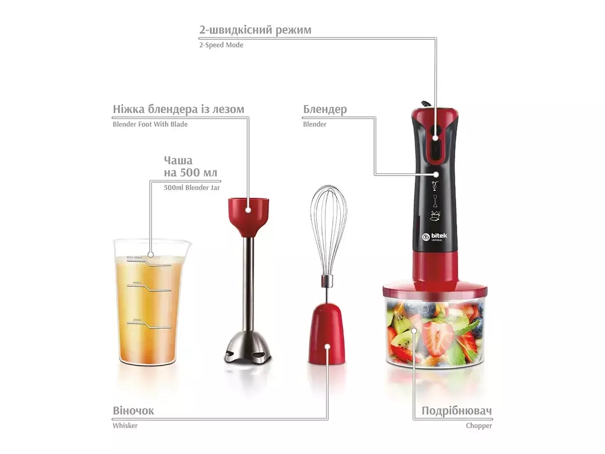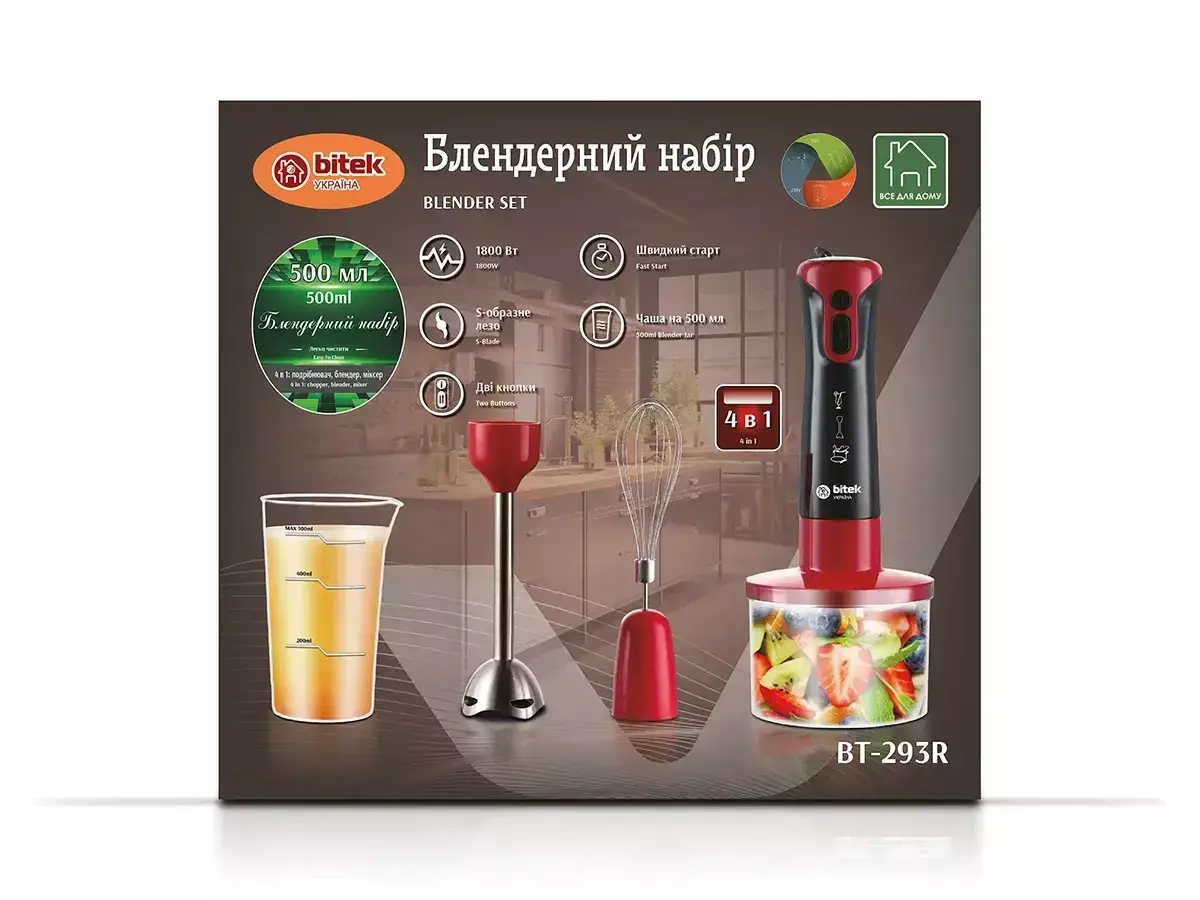 Блендерний набір 4 в 1 1800Вт BITEK BT-293R RED/ 6496 (16)