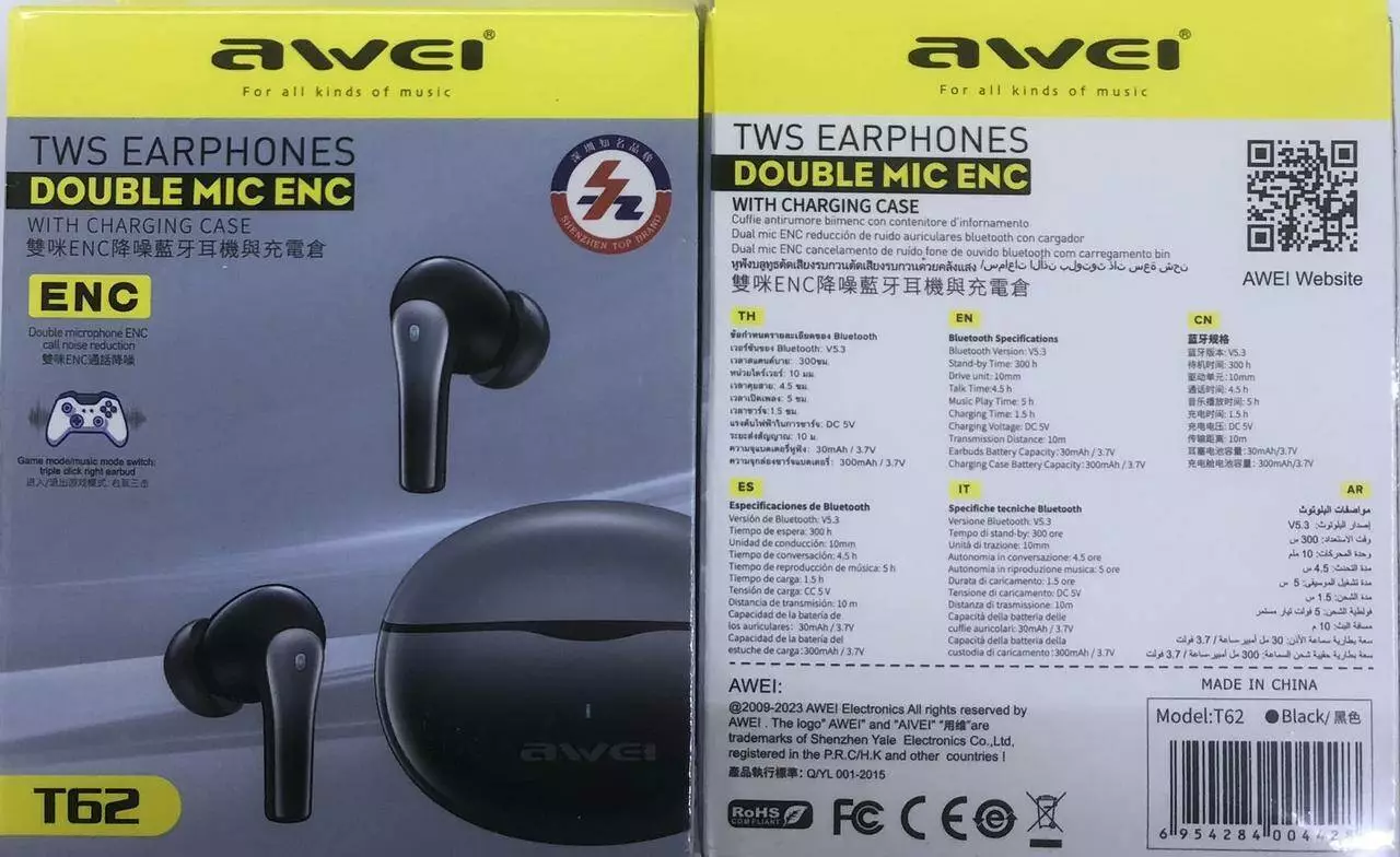 Bluetooth навушники AWEI T62 TWS Bluetooth (120 шт)