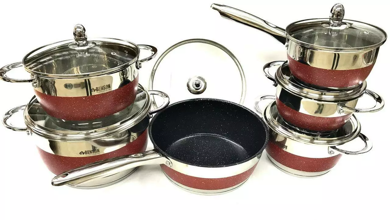 BN-294 (2)-Набір каструль 12 пр Нерж 2,1л; 2,1л; 2,9л; 3,9л; 6,5 л + сковорода; чорний