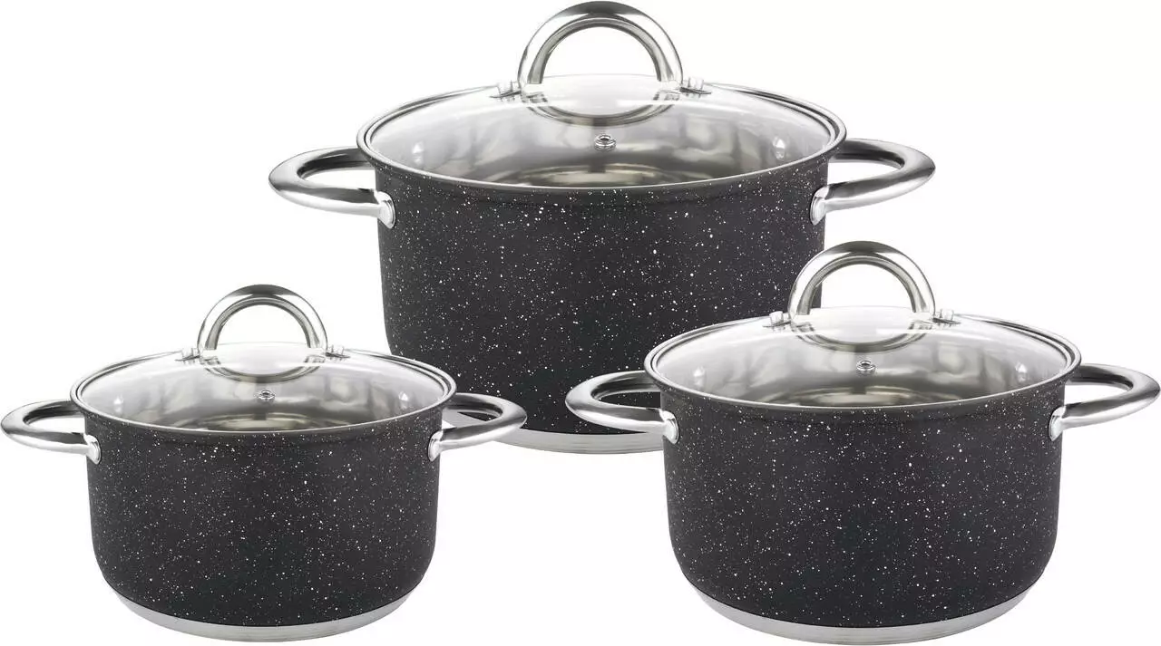 BN-685 Набір каструль-Нерж. сталь, мармур 1,9 л, 2,6 л, 3,6 л, 6