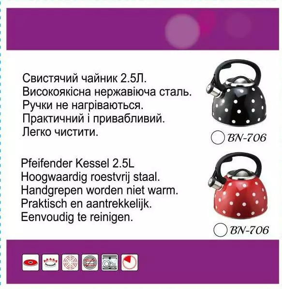 Чайник BN-706 з неіржавкої сталі зі свистком (12)