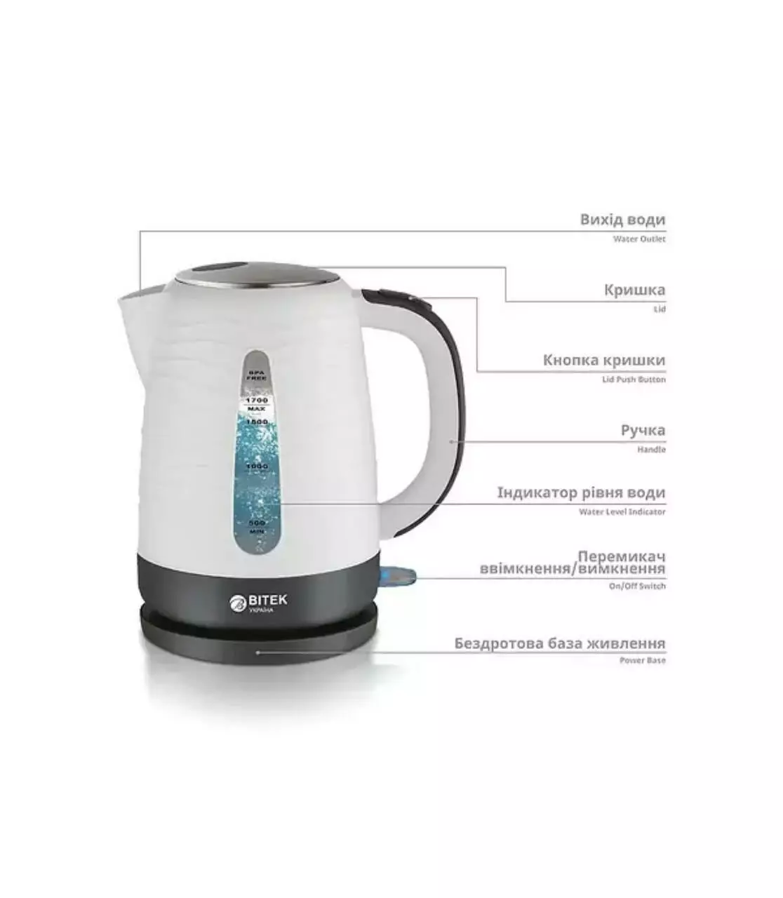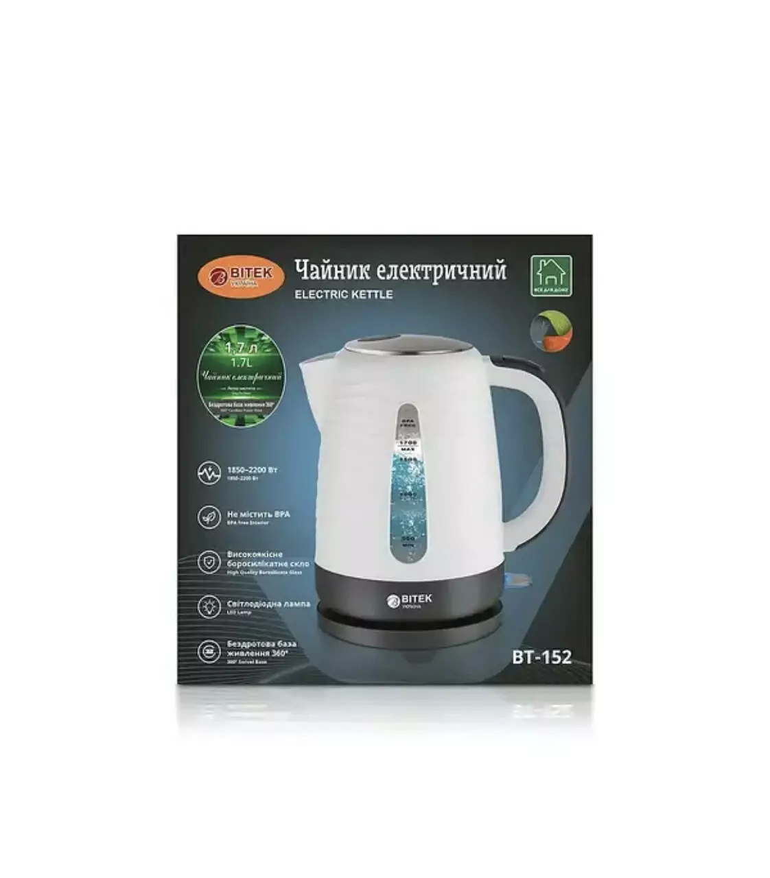 Чайник електричний 1,7л 2200Вт BITEK BT-152/ 7043 (16)