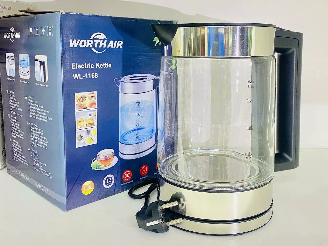 Чайник електричний скляний 1,8л WL-1168 CZ-B588 (12)