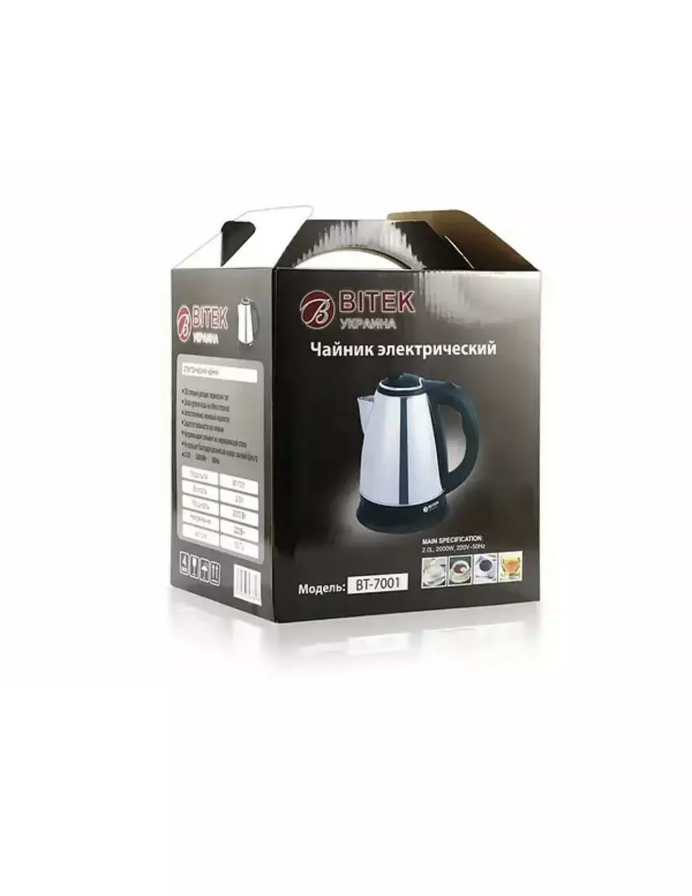 Чайник електричний з нержавіючої сталі 2,0л 2000Вт BITEK BT-7001/ 8950 (12 шт)