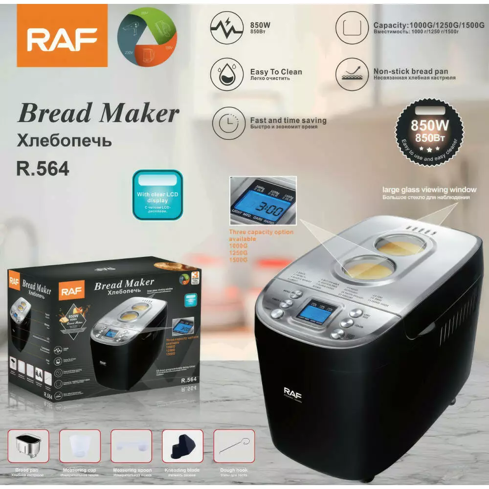 Електрична хлібопічка з РК дисплеєм та 15 програмами випікання RAF