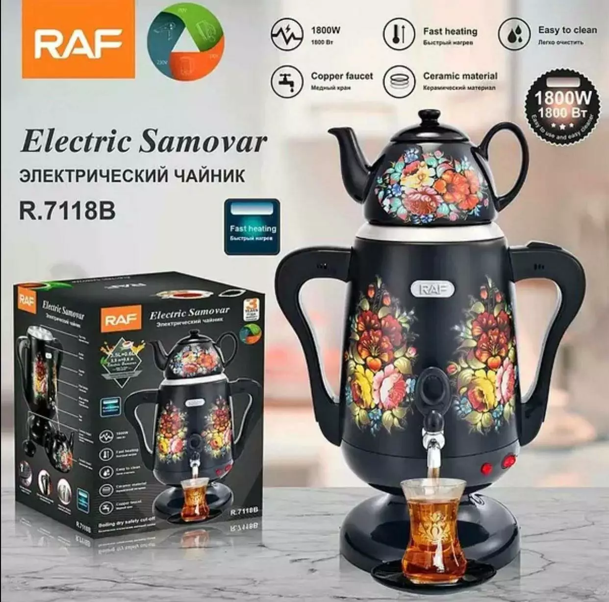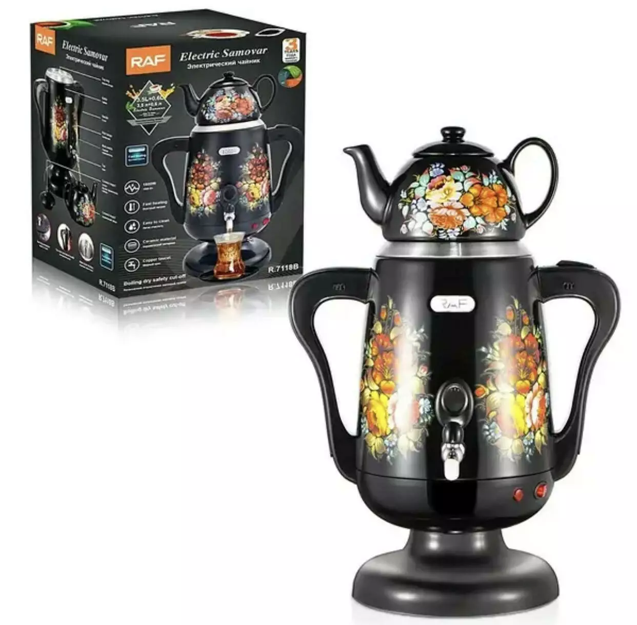 Електричний самовар 2 в 1 на 3.5 л. з порцеляновим чайником на 0.6 л. RAF R.7118 (6)