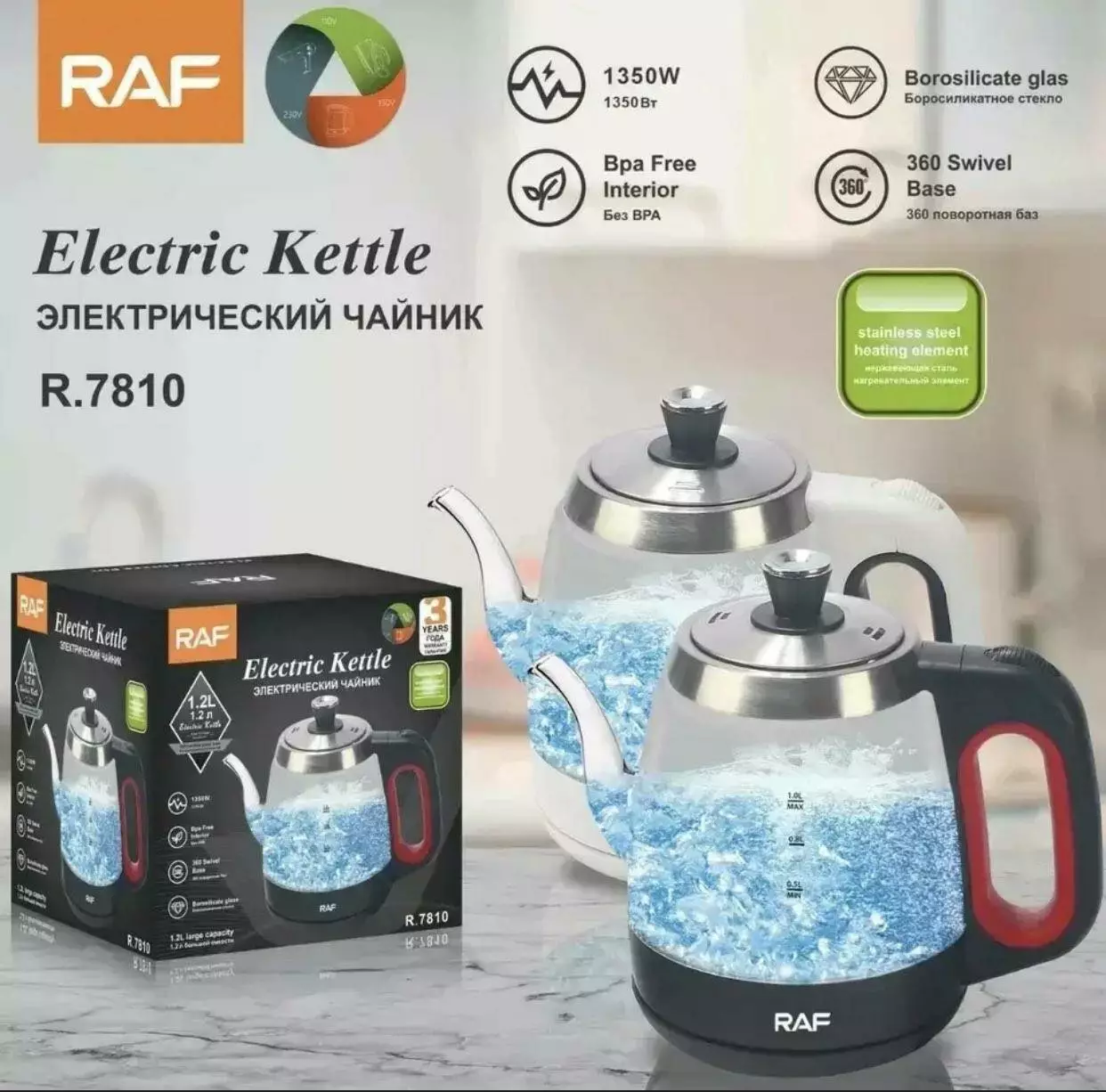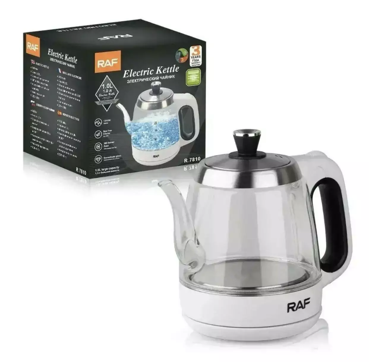 Електричний скляний чайник із носиком на 1.2 л 1350 Вт RAF R.7810 (16)