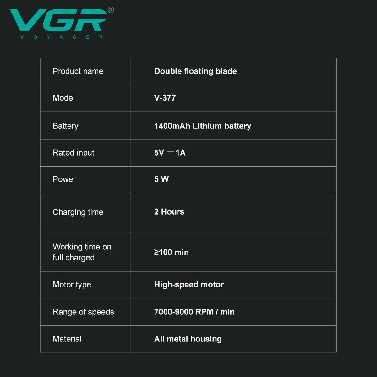 Електробритва VGR V-377 шейвер, подвійне лезо, регулювання потужності 7000-9000 RPM, LED displa (20)