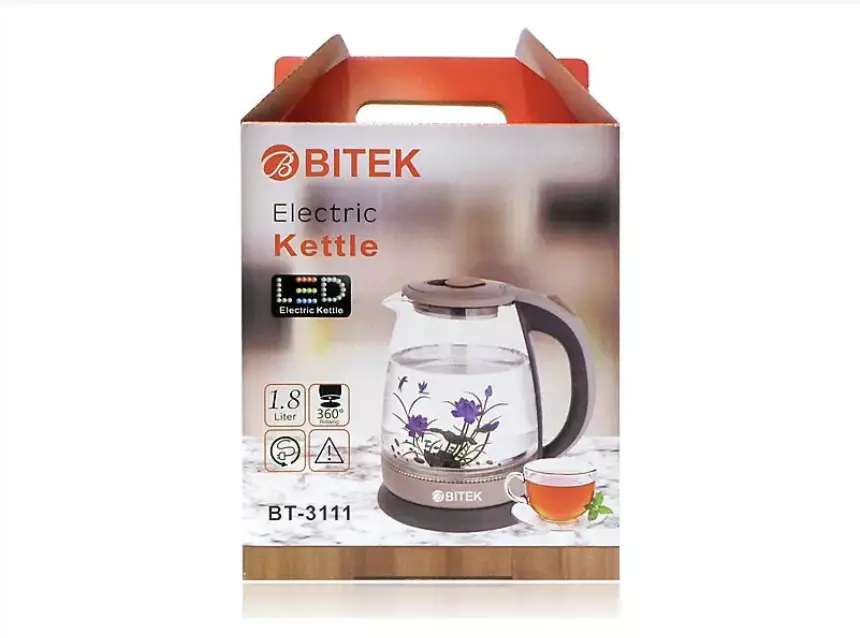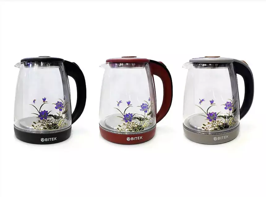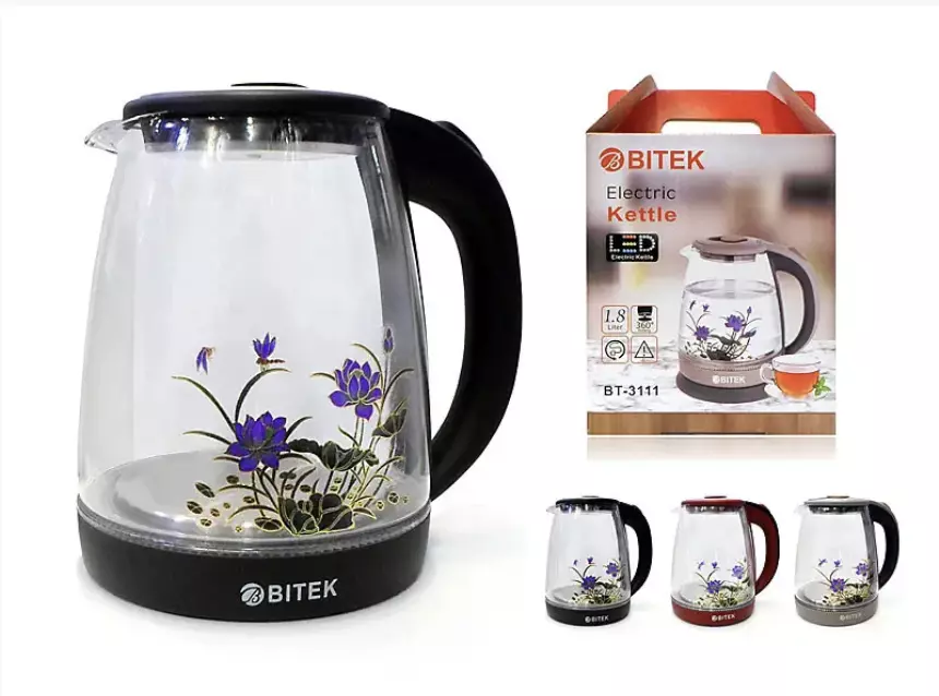 Електрочайник скляний 1,8 л 2400 Вт BITEK з квіткою BT-3111/ 9467 (12 шт./ясть)