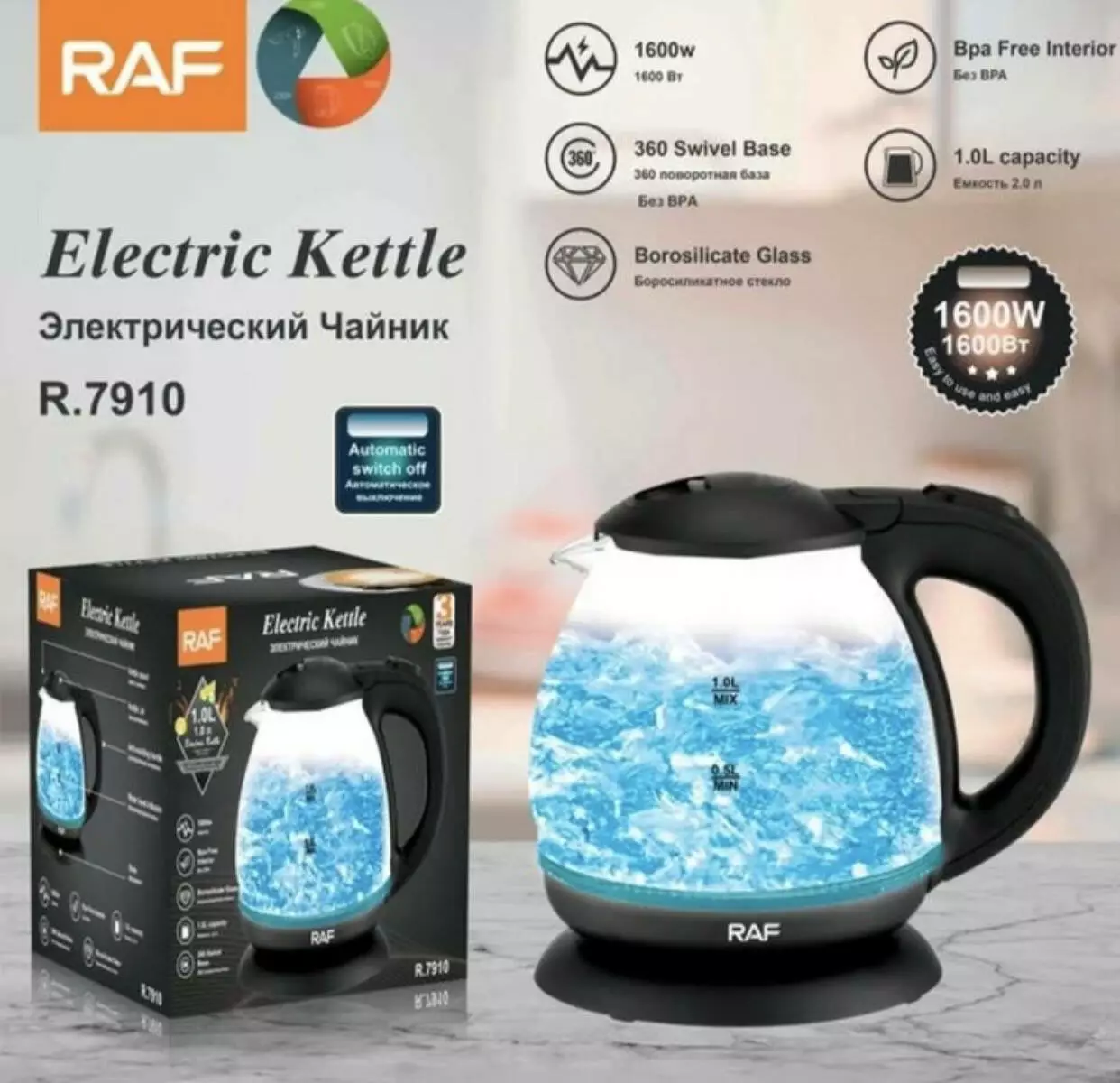 Електрочайник скляний 1л RAF R 7910 (16)