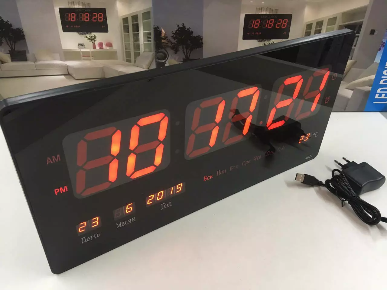Електронний настінний годинник VST-4622-1/1237 RED/ 23cm*45 cm*3cm (12 шт./яский)