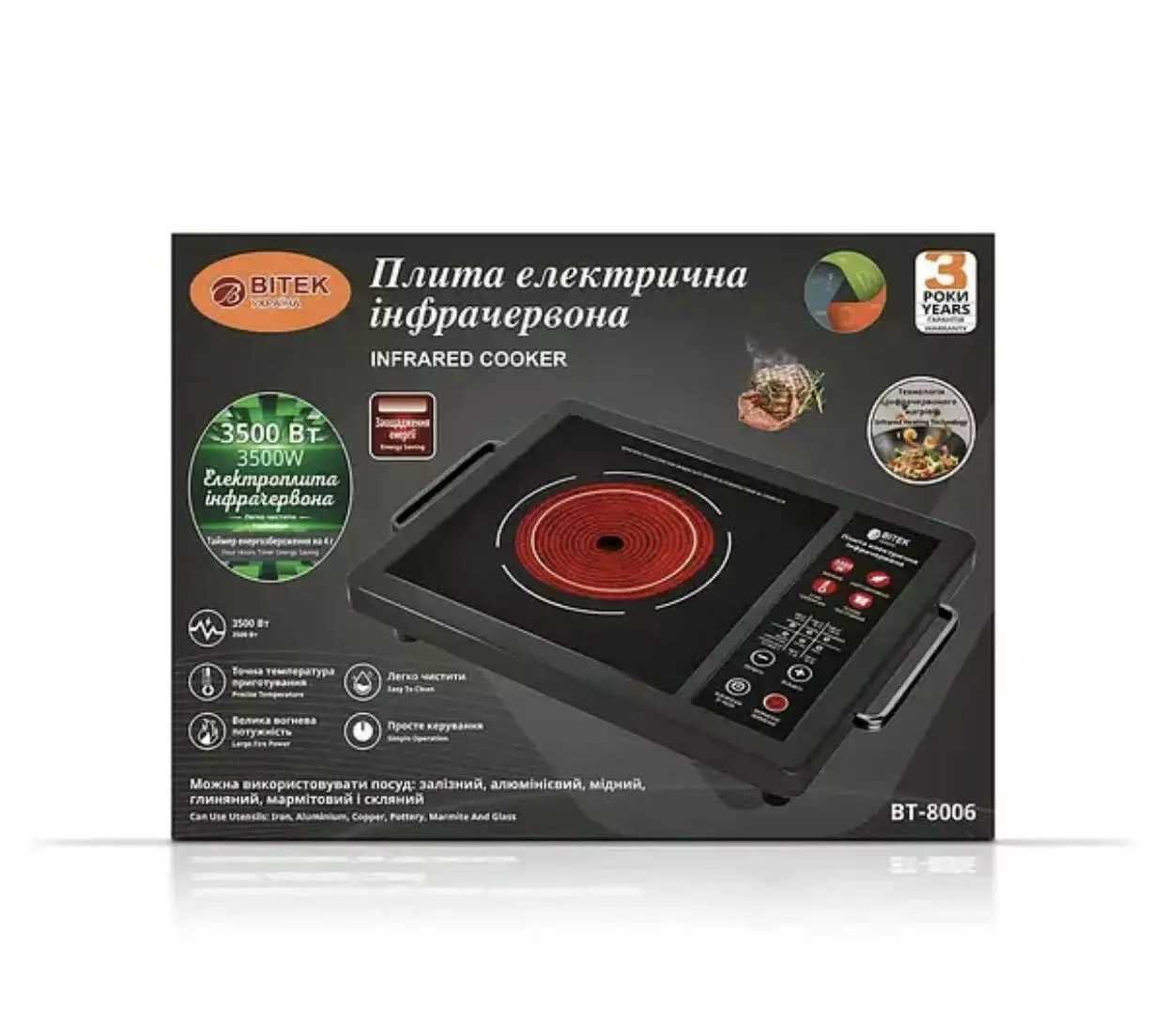Електроплита інфрачервона 1 конфорка BITEK 3500Вт BT-8006/ 6755 (8)