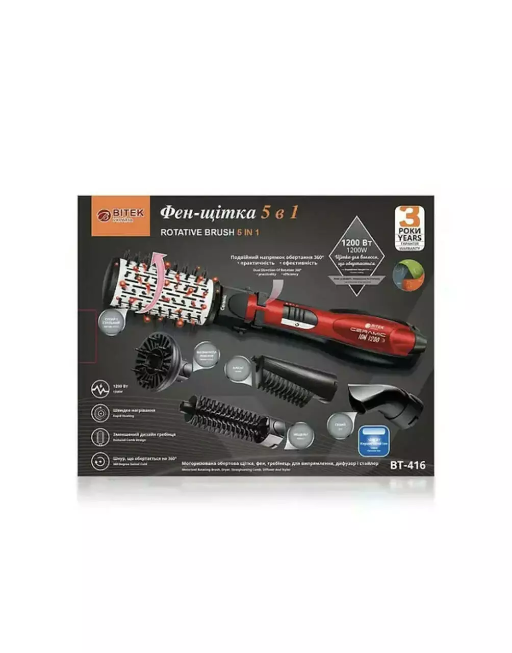 Фен-щітка для волосся з щіткою, що обертається, 5 в 1 1200Вт BITEK BT 416 7115 (6 шт)