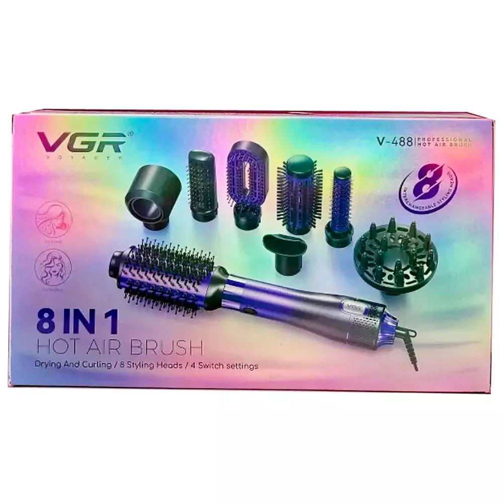 Фен-щітка стайлер VGR 8 в 1 V-488 PURPLE, 8 насадок, 4 режими (12)