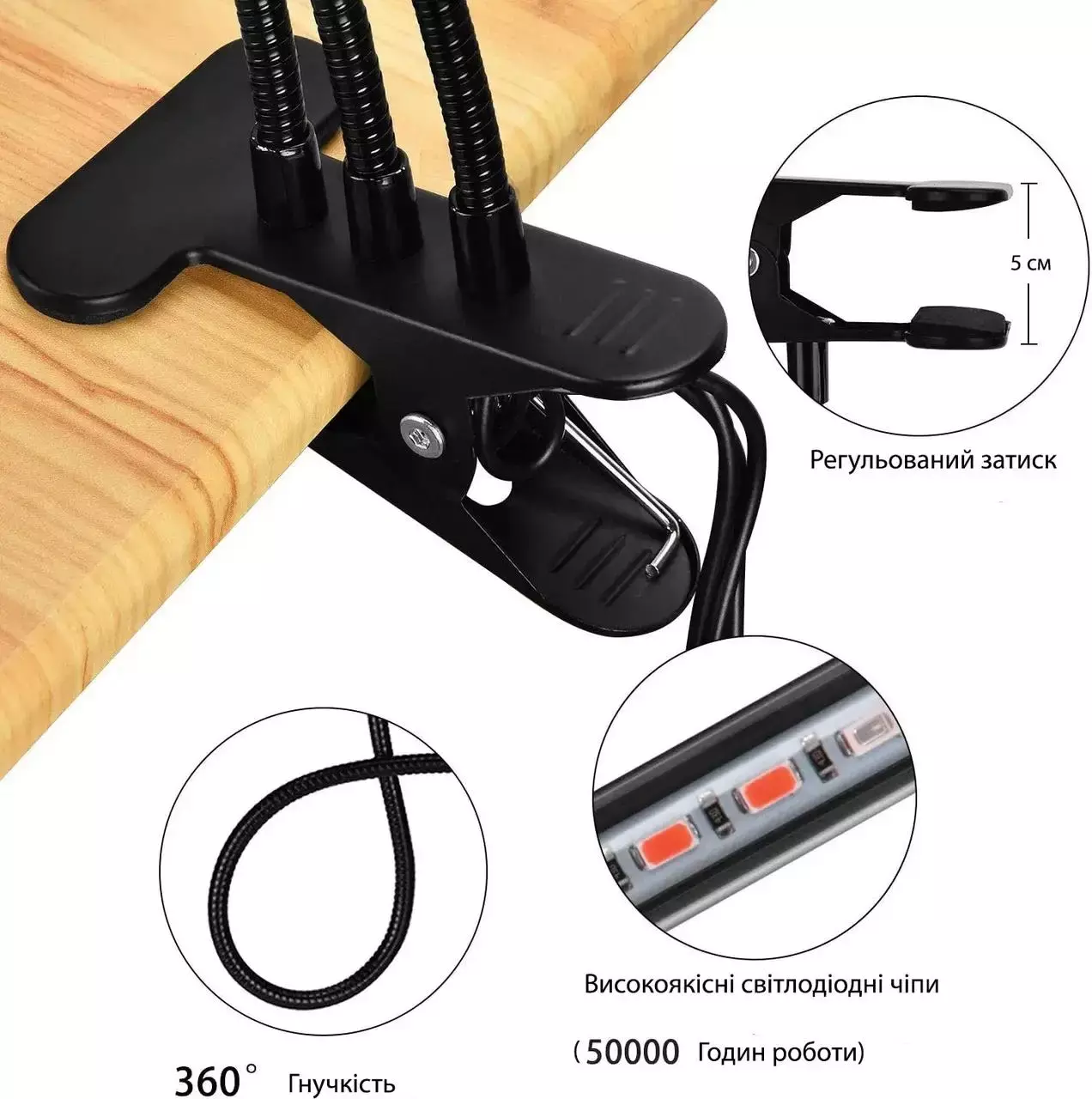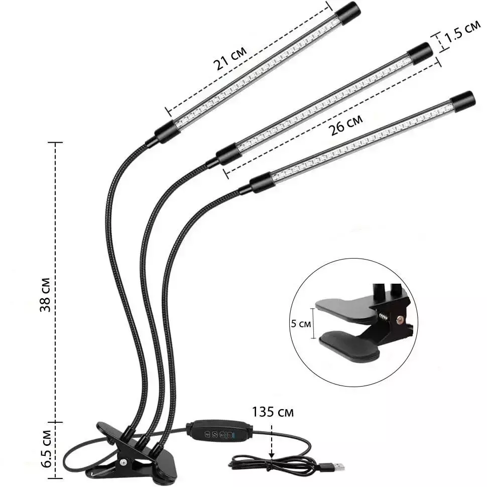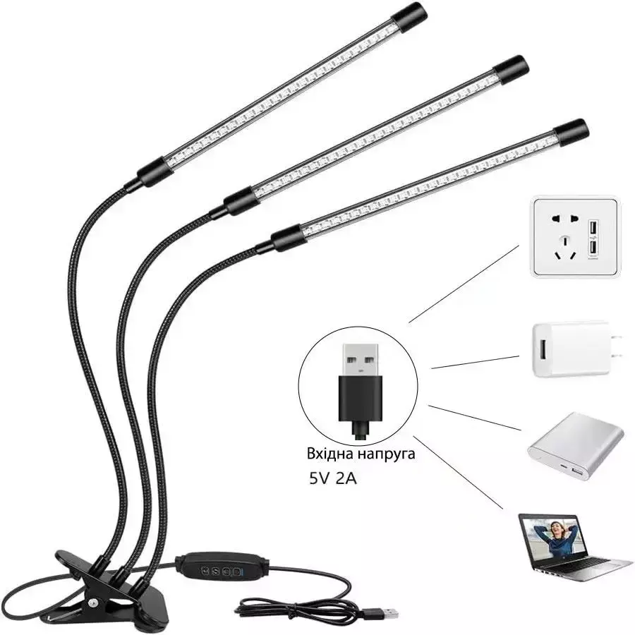 Фітолампа USB для рослин 3 гілки гнучка (30)