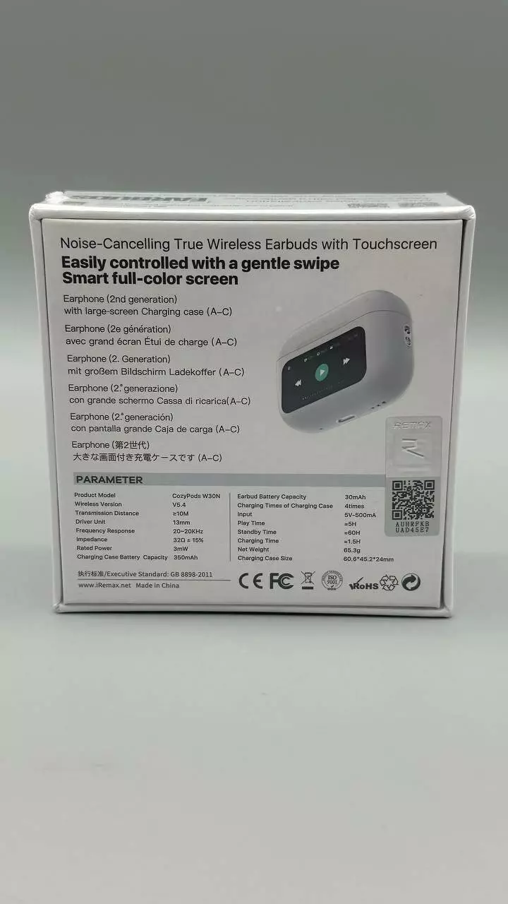 Гарнитура Bluetooth REMAX Noise-Cancelling True Earbuds with Touchscreen CozyPods W30N
