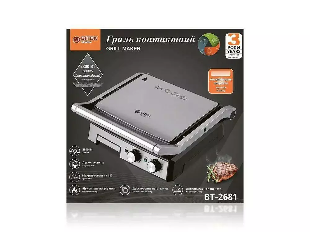 Гриль контактний 2800Вт BBQ BITEK BT-2681/ 7092 (4)