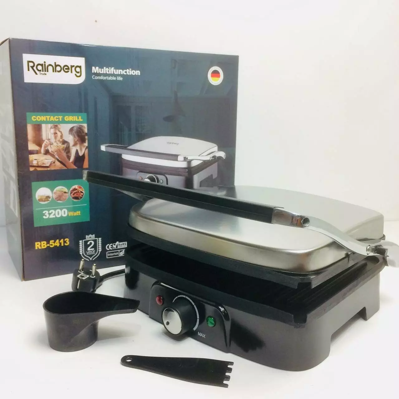 Гриль притискний Rainberg RB-5413 з терморегулятором зі знімним