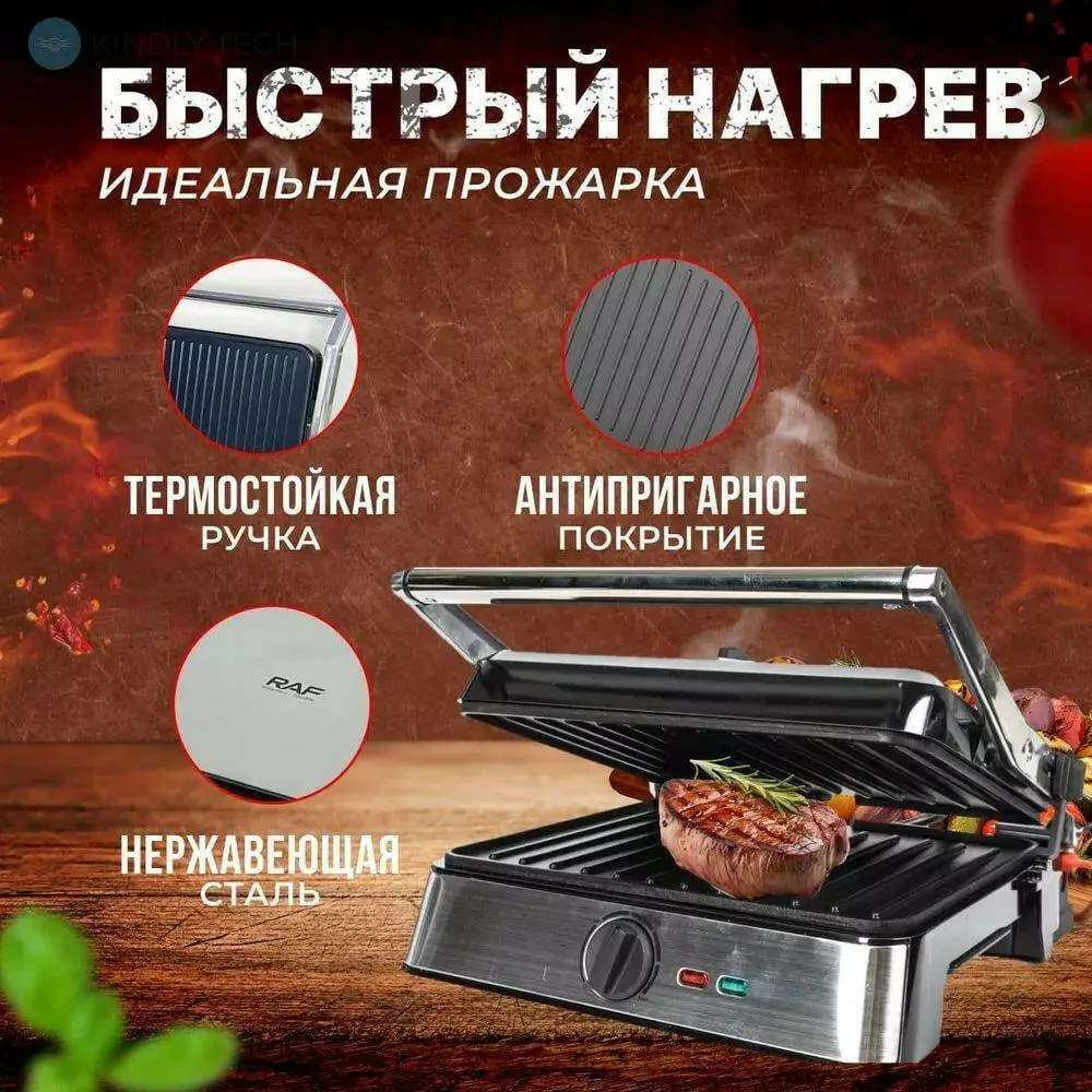 Гриль притискний з антипригарним покриттям RAF R.561 2200W