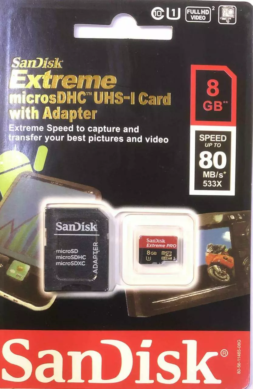 Картка пам'яті SanDisk micro SD 8 GB Class 10 + адаптер