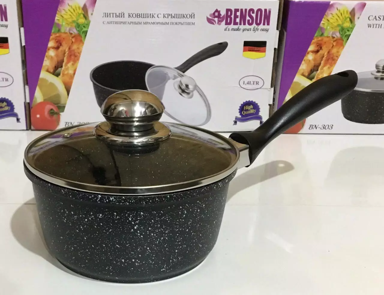 Ковшик з кришкою мармур 1.4 л BN-303 (8)