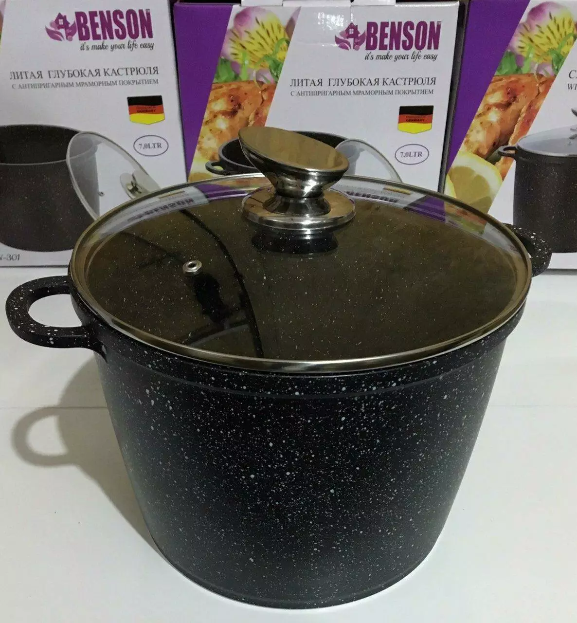 Каструля з кришкою мармур 7 л BN-301 (4)