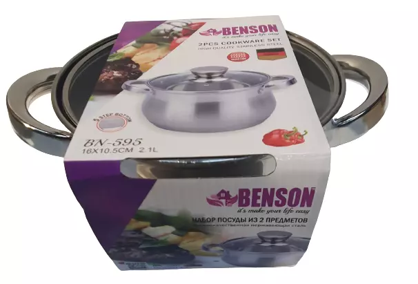 Каструля з кришкою — Нерж.сталь 2.1 л, 16*10,5 см BN-595 (12 шт./ясть)