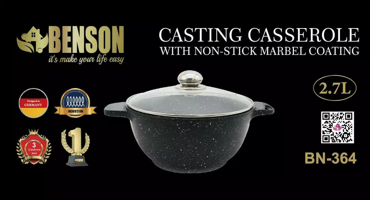 Каструля з мармуровим покриттям BN-364 (2,7 літра) (6 шт./яск)
