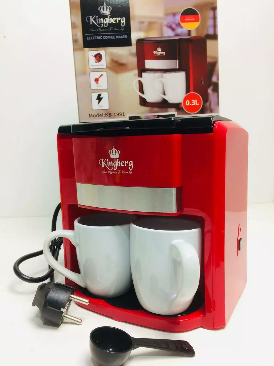 Кавоварка з двома чашками електрична Червона Kingbeg KB 1991 (6