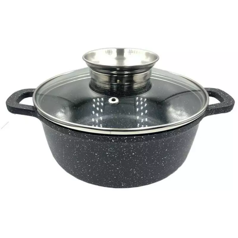 Казан UNIQUE UN-5276 5.5 л, 26 см круглий мармур/чорний (6 шт./ясть)
