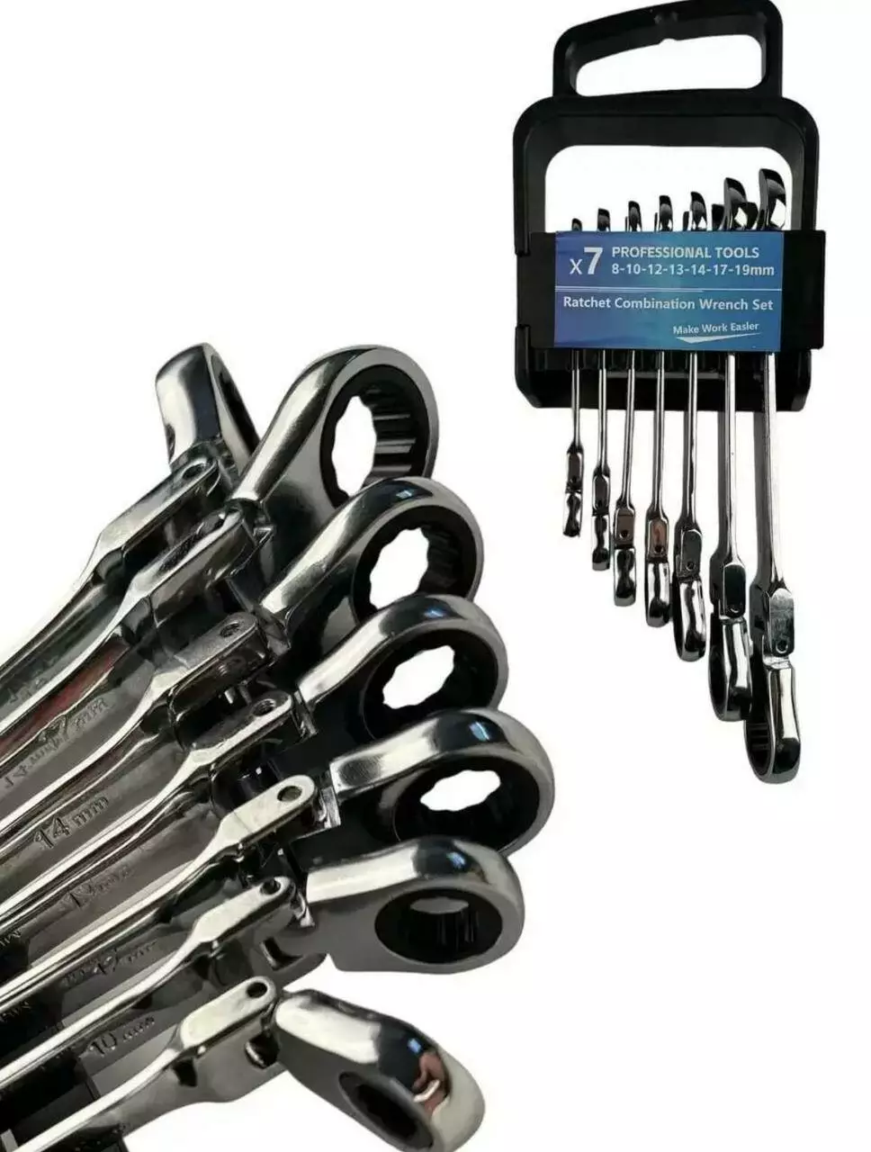 Ключі гайкові комбіновані тріскачкові шарнірні в наборі 7 шт Wrench
