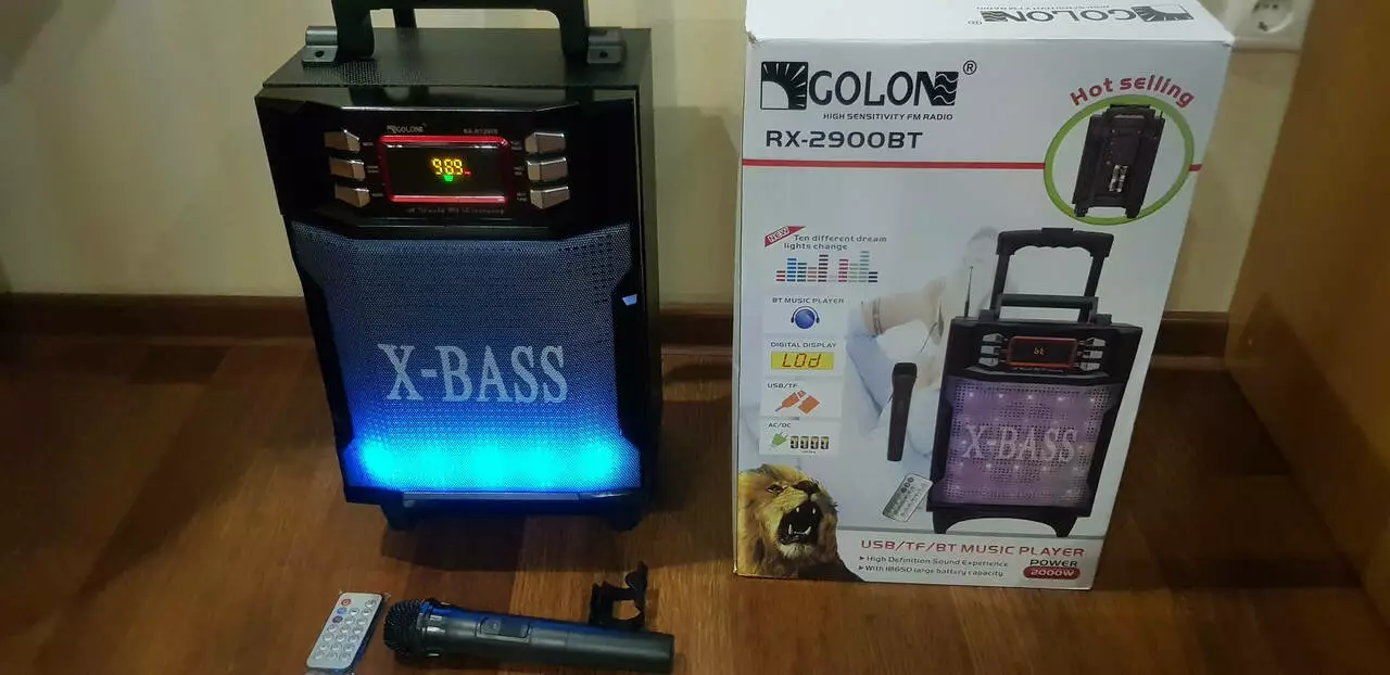 Golon RX-2900 має бездротовий мікрофон, який є відмінним доповненням до функціональності цієї акустичної системи. Завдяки цьому мікрофону, ви зможете використовувати колонку не тільки для прослуховування музики, а й для проведення караоке-вечірок, виступів та публічних виступів.