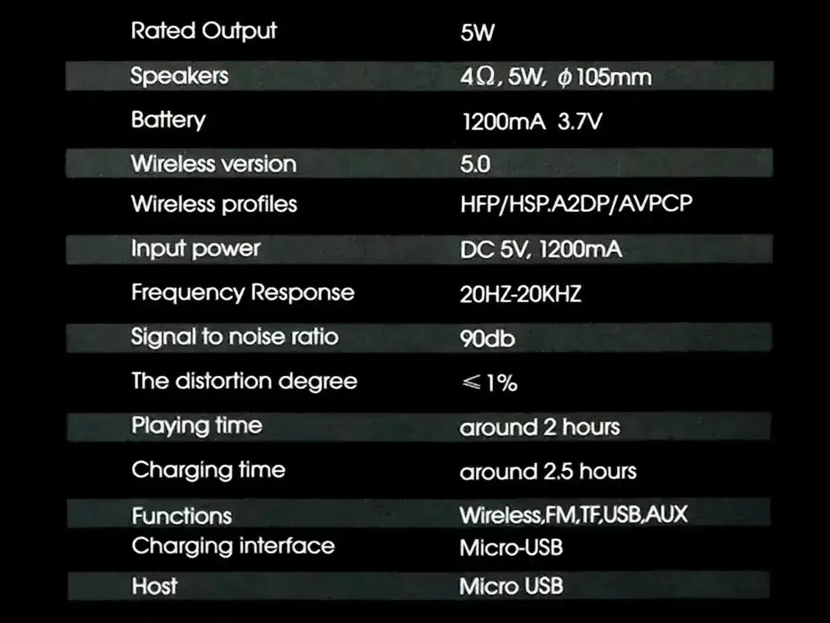 Підтримує TF/USB/FM/BT/AUX/TWS.