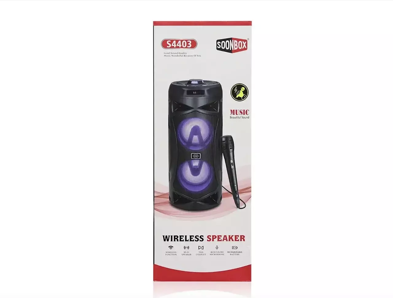 Ергономічна, стильна колонка, зручна в експлуатації. У динаміках вбудовані світлодіоди. Можливе підключення пристрою за допомогою USB, AUX, TF CARD, вихід для підключення мікрофона. Вбудовано FM-радіо. Чудове звучання, компактний розмір. На верхній панелі колонки є спеціальна підставка для вашого смартфона.
